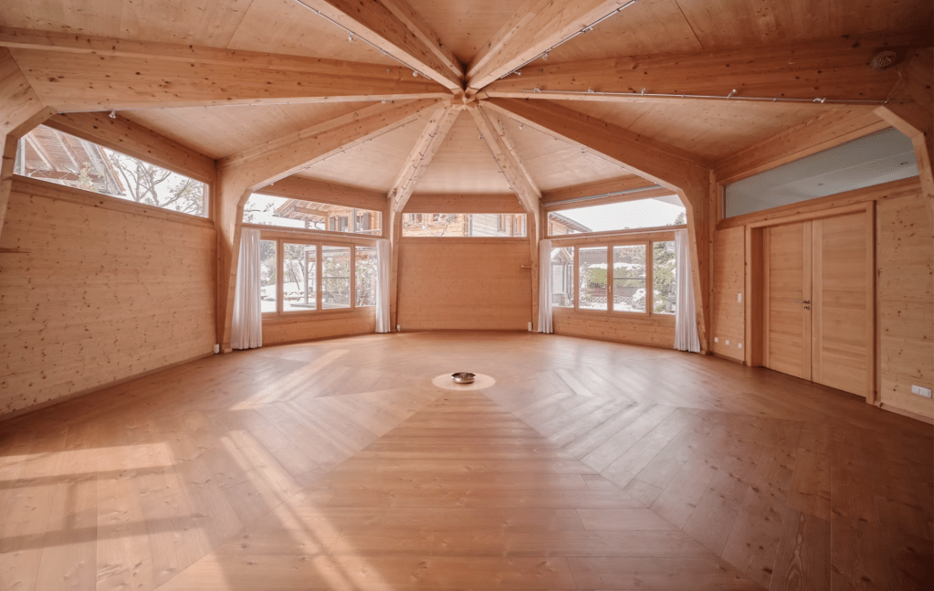 Der Yoga-Pavillion im Quartier 360° in Untermühlegg ist die perfekte Konzertlocation für unsere Musik. Er bietet für ca. 30 Menschen Platz und hat durch seine runde Form eine heilsame Atmosphäre. Yogamatten und Decken zum Hinlegen oder Setzen sind verfügbar. Für bis zu 10 Menschen gibt es auch Stühle.